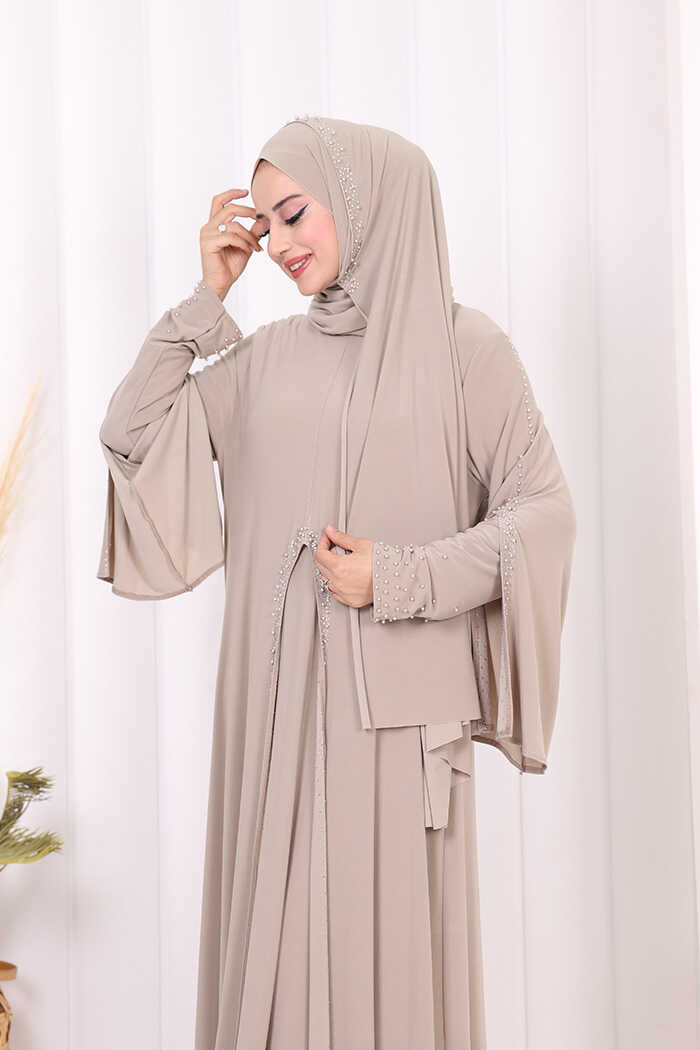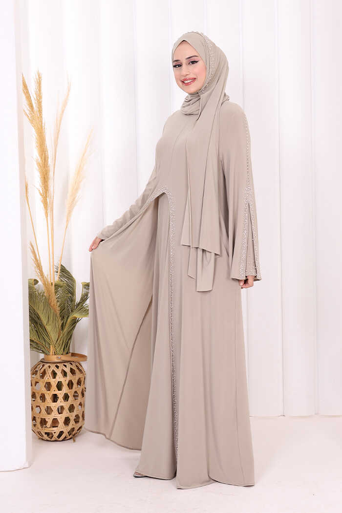 Pelerin kol yırtmaç detaylı, taş işleme detaylıdır.