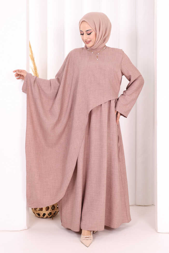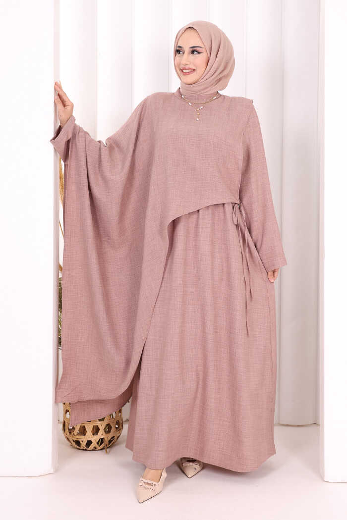 Pelerinli Elbise 6068 Gül Kurusu