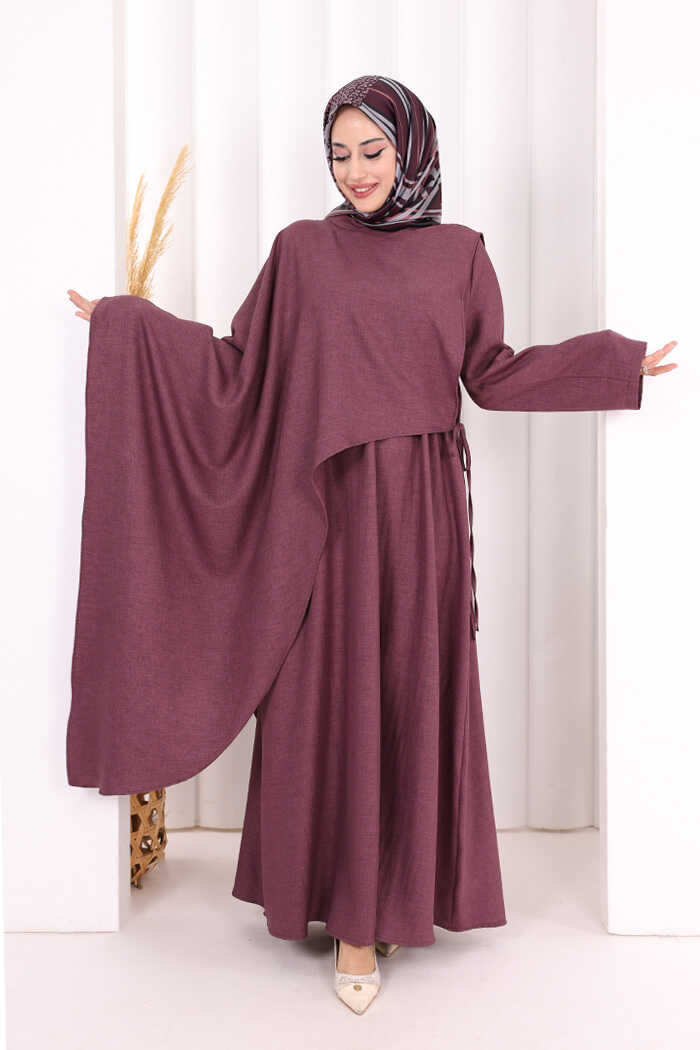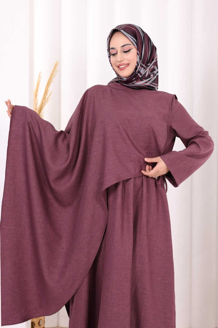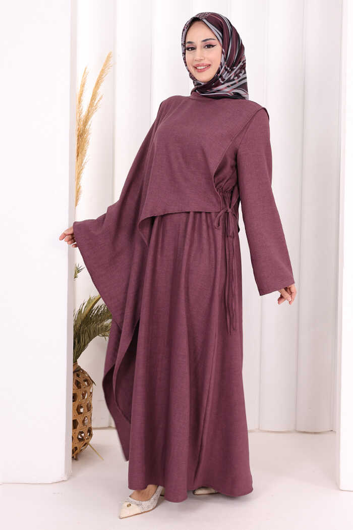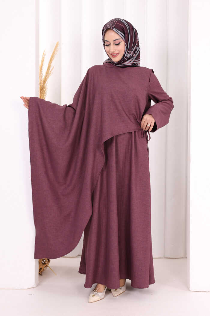 Pelerinli Elbise 6068 Mürdüm
