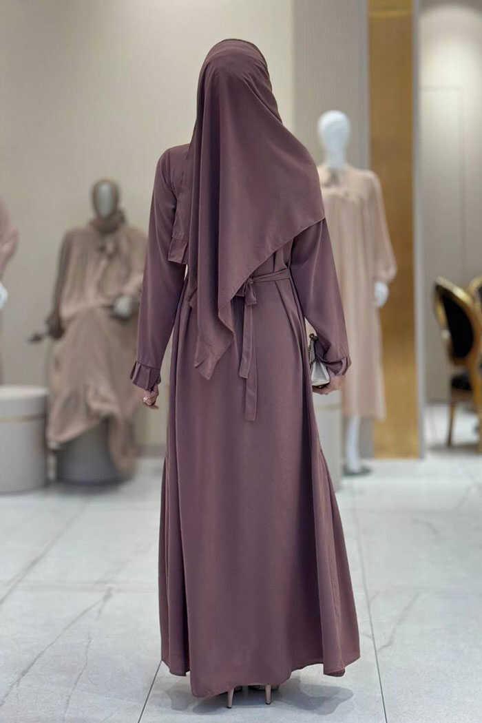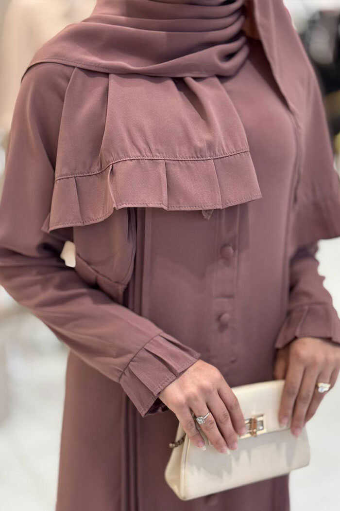 Pilise Detay Elbise Şal İkili Takım 6039 Gül Kurusu
