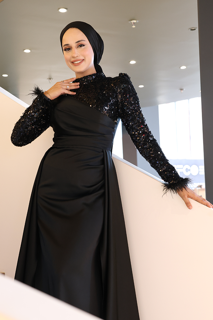 Pul Payet Saten Abiye 7064 Siyah