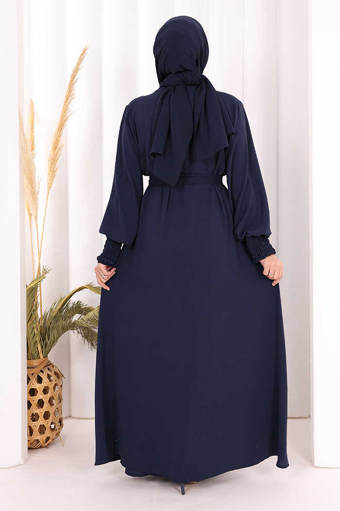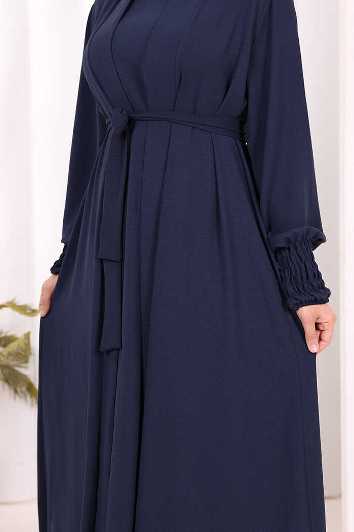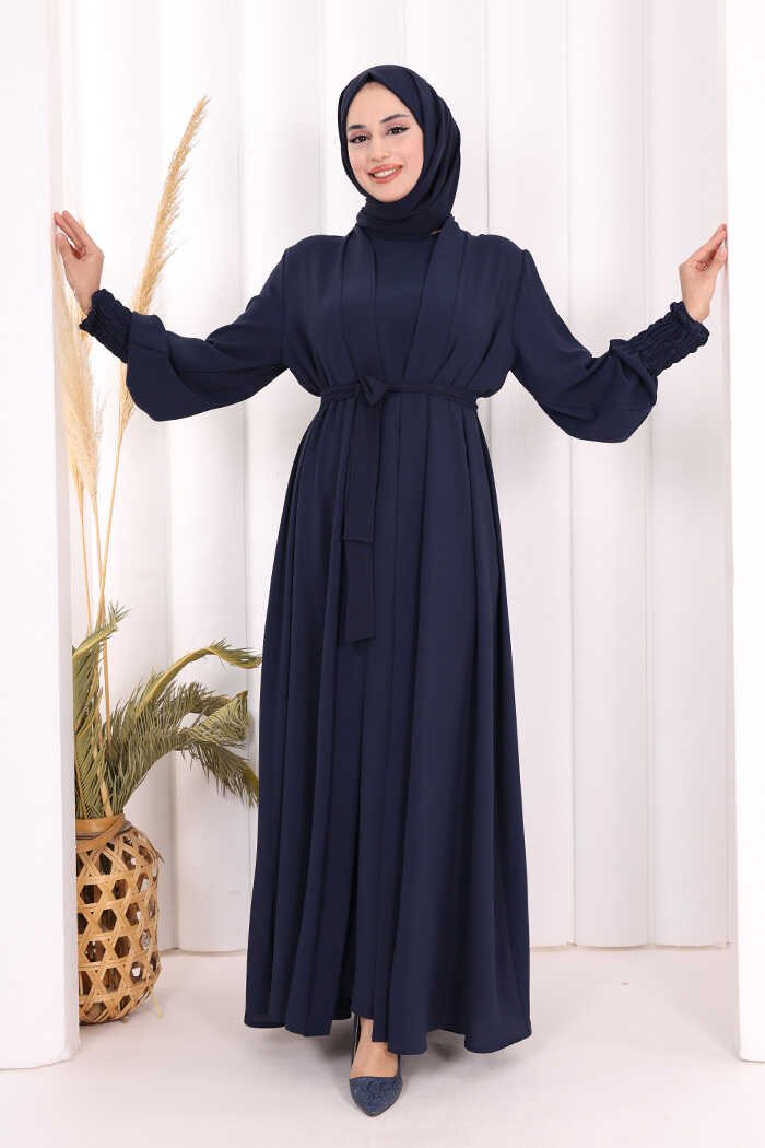 Elbiseli Abaya Takım ŞAL HEDİYE 3883 Lacivert