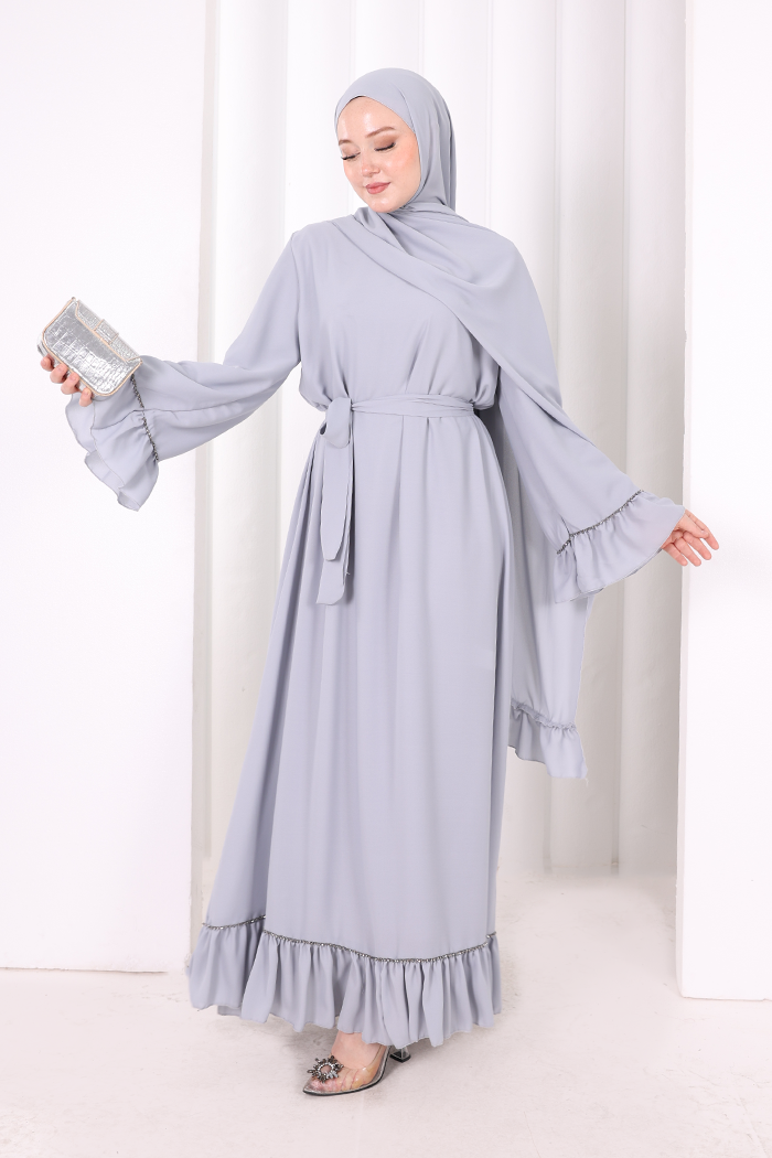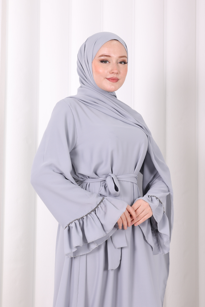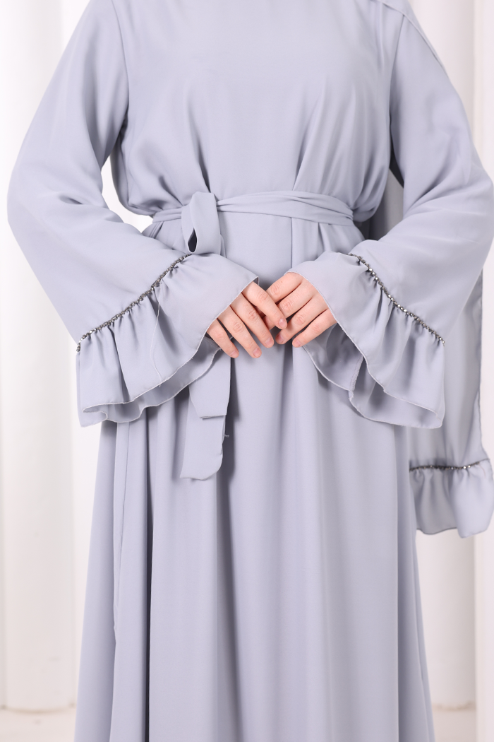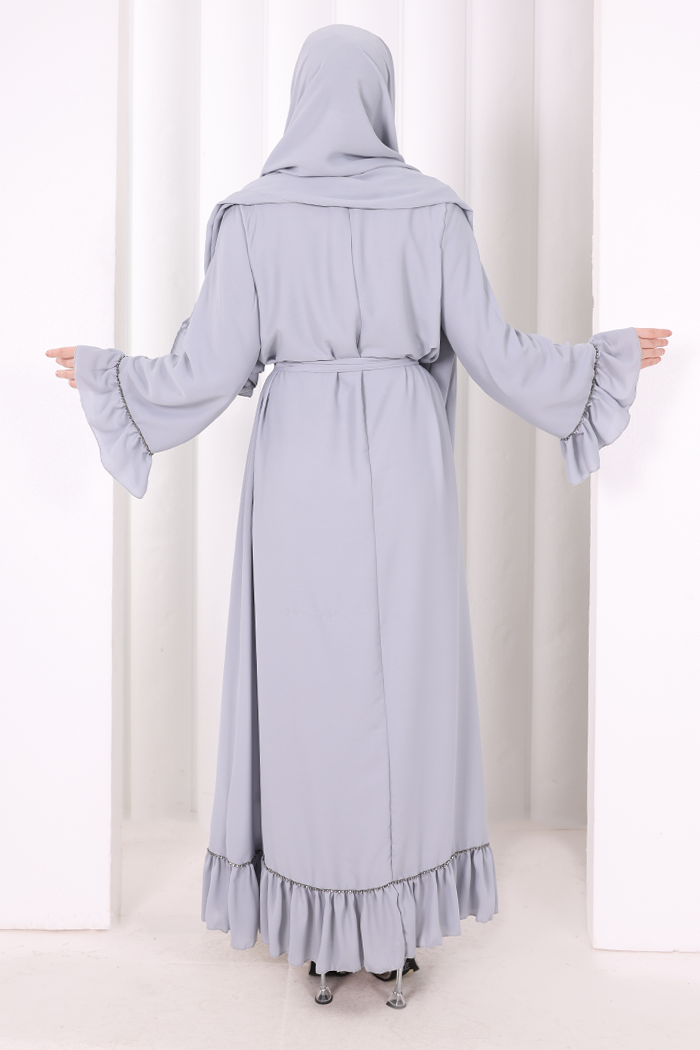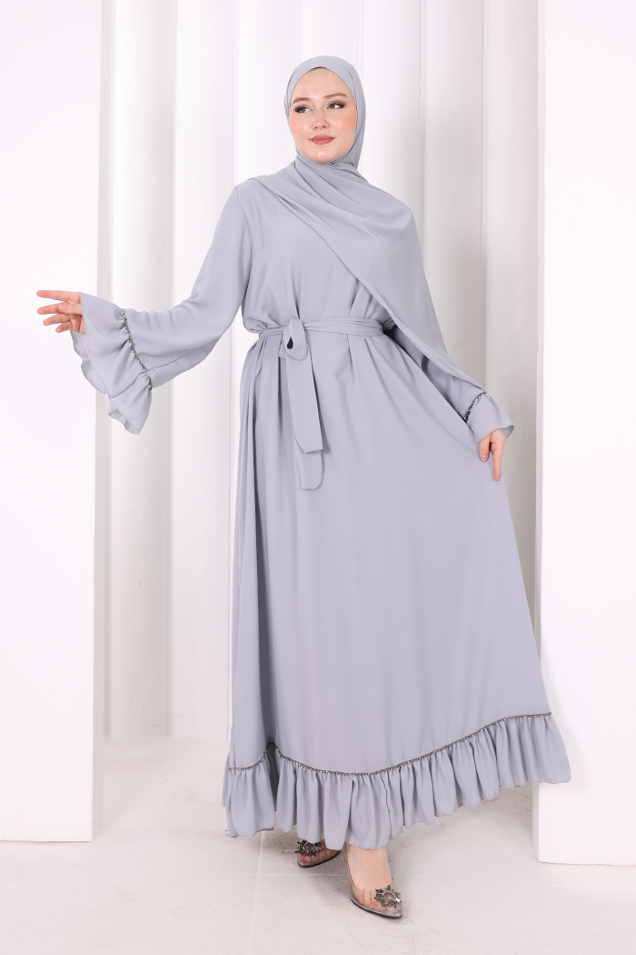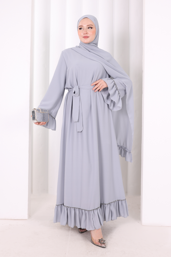Şallı Fırfırlı Elbise 6085 Gri