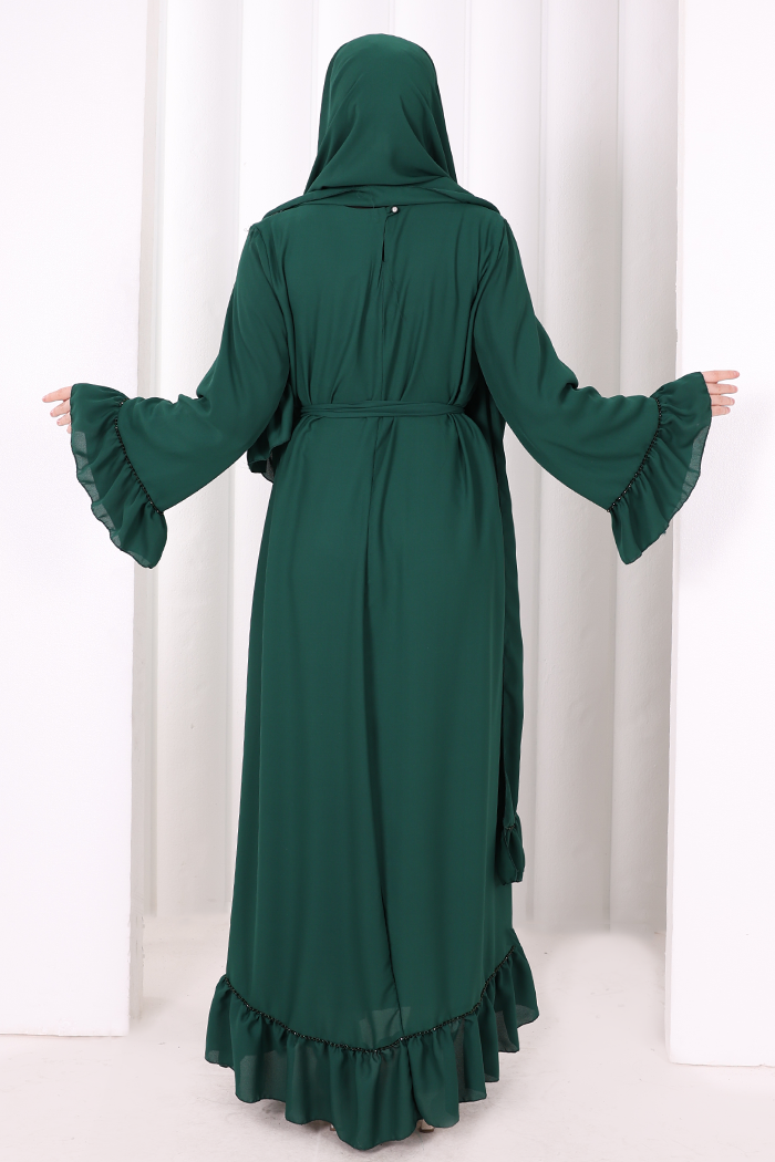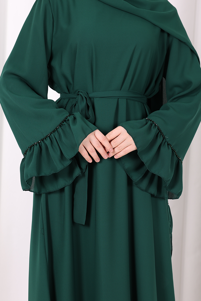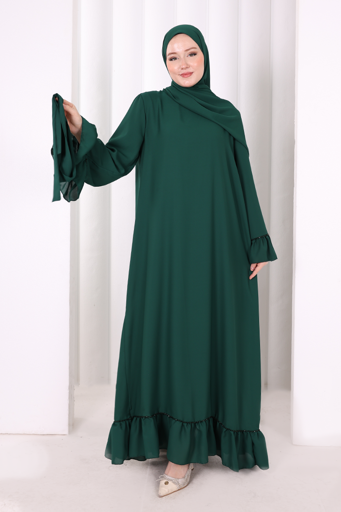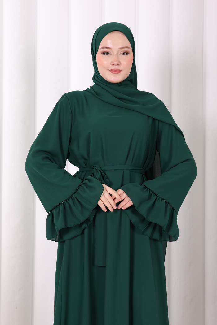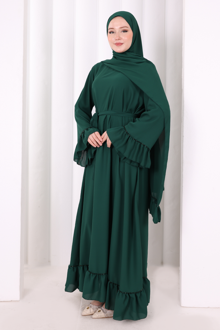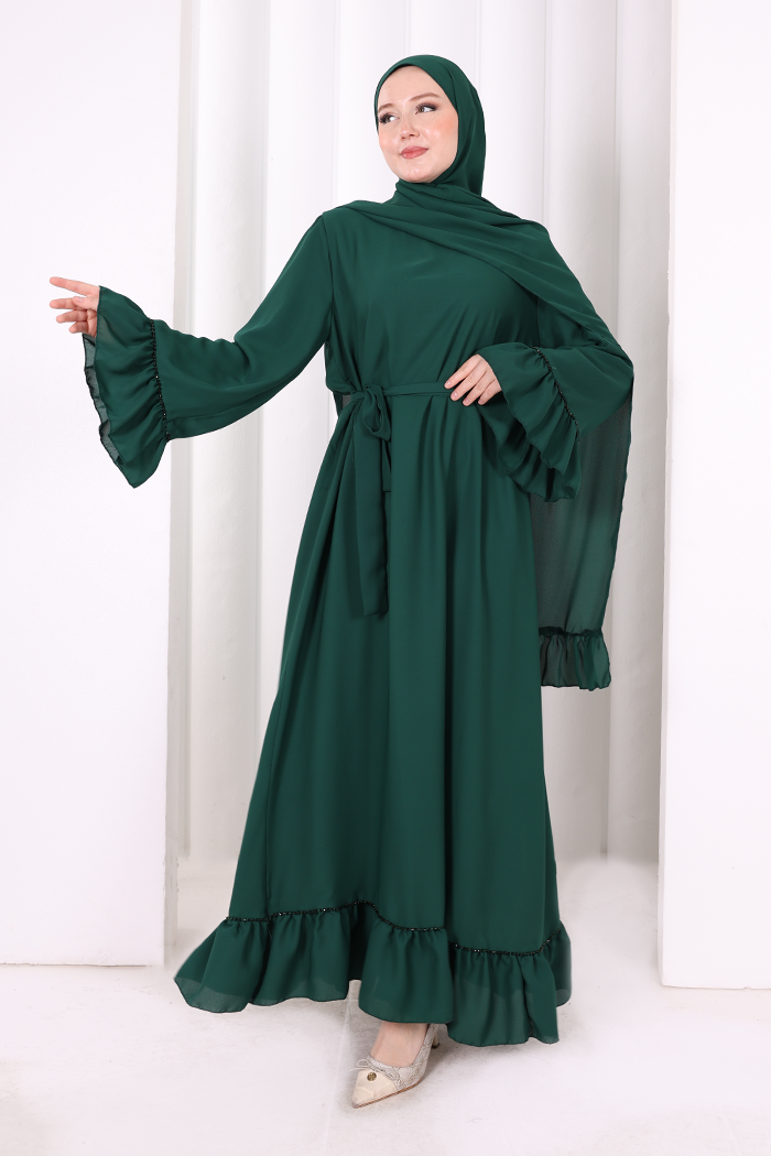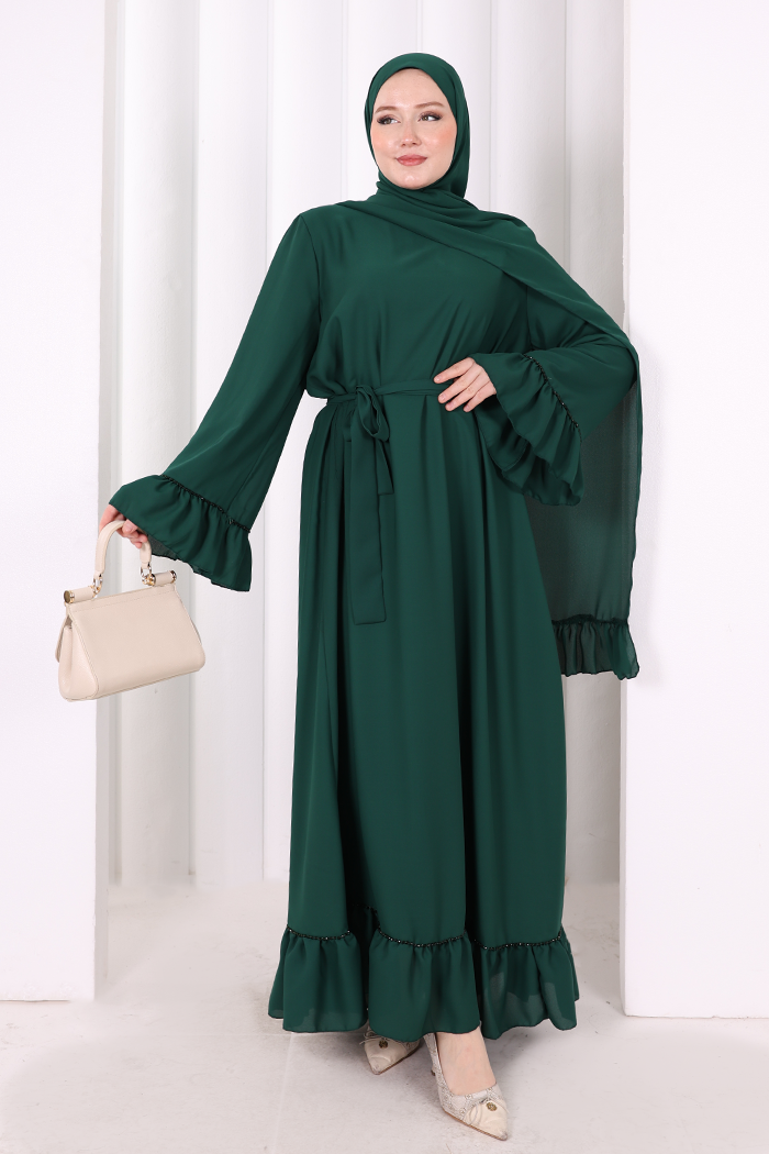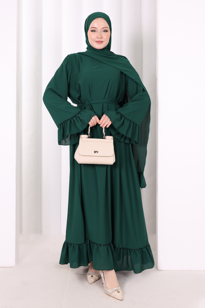 Şallı Fırfırlı Elbise 6085 Zümrüt