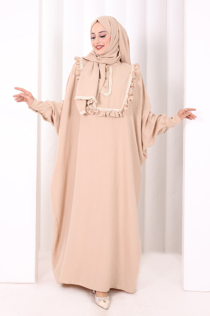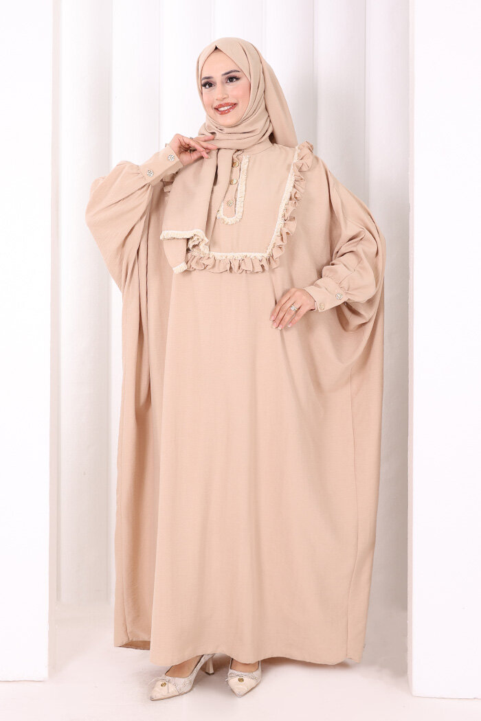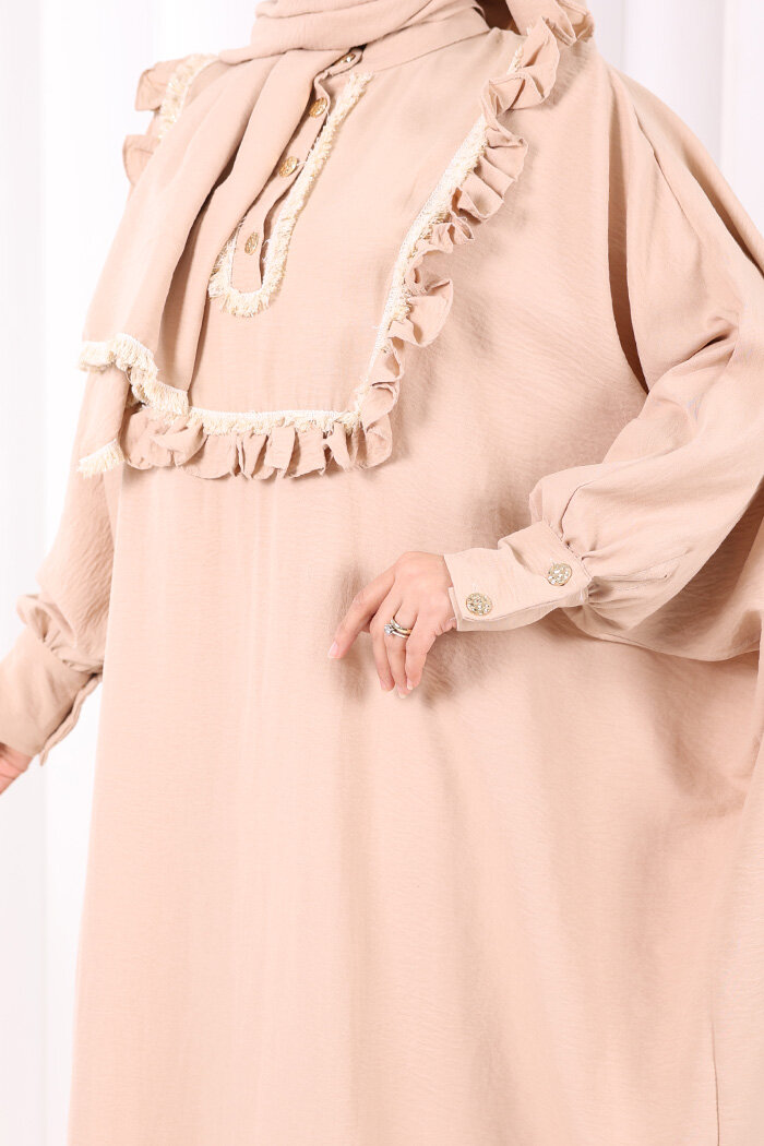 Şallı Fırfırlı Elbise 6088 Taş