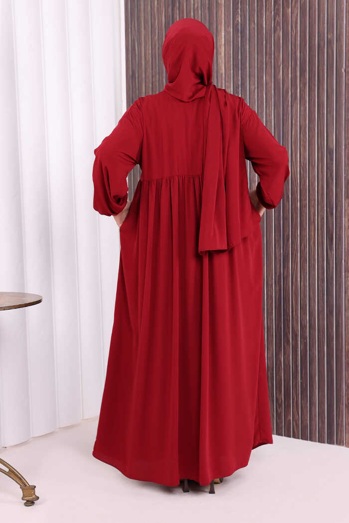 Şallı Kruvaze Namaz Elbisesi 6027 Bordo