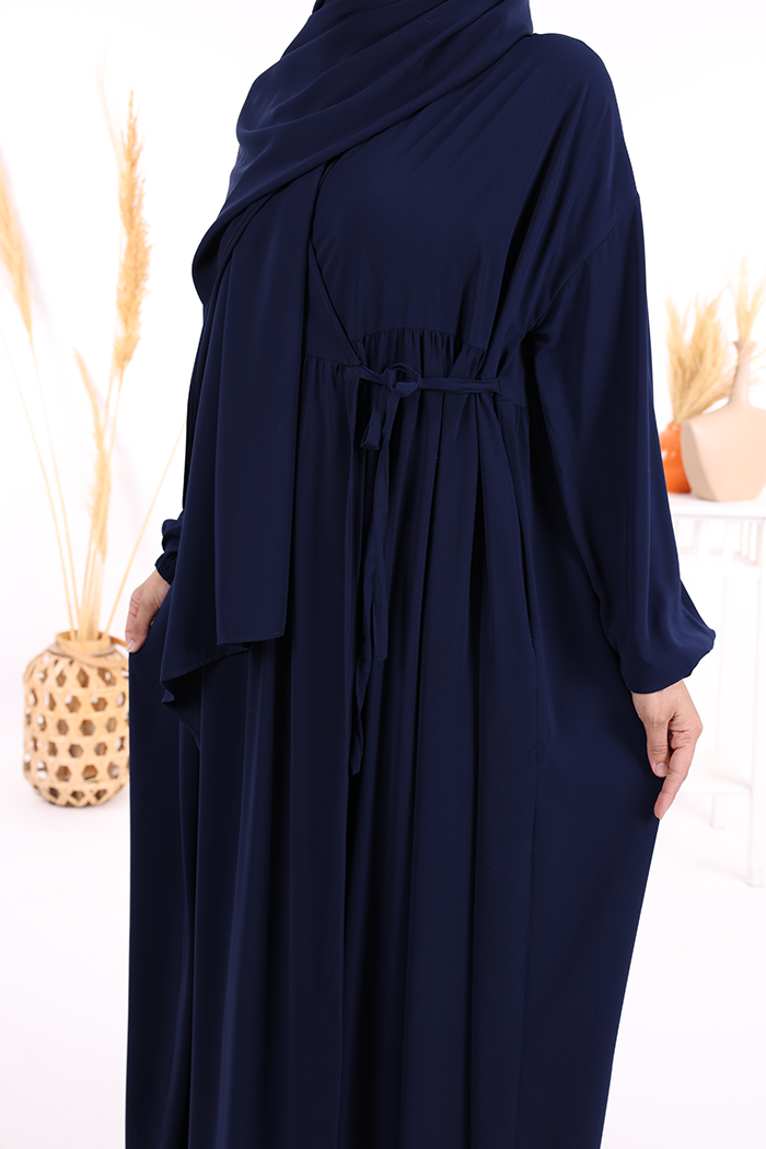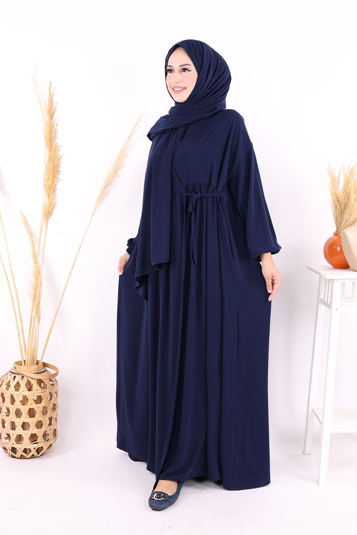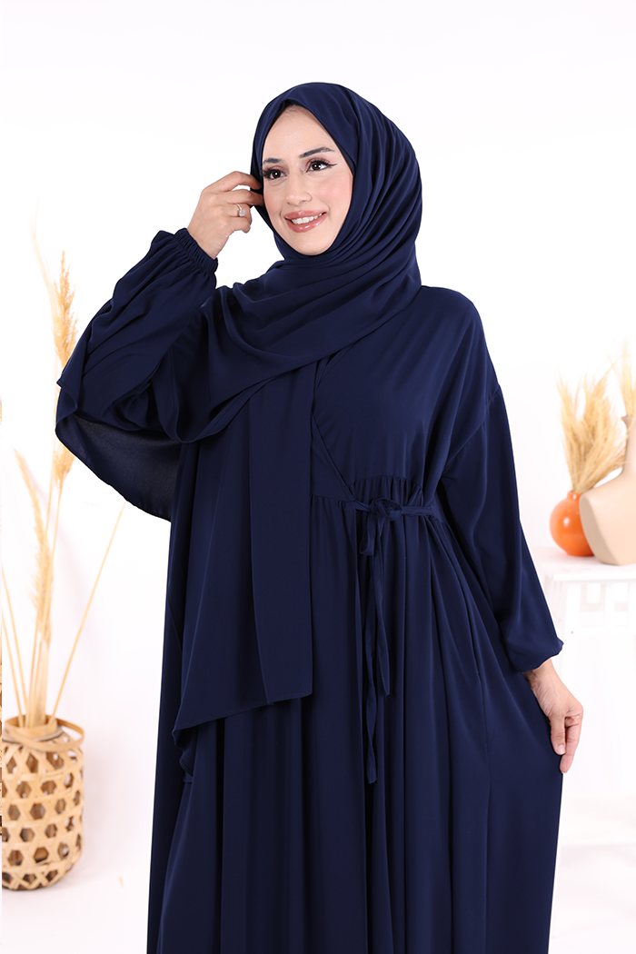 Şallı Kruvaze Namaz Elbisesi 6027 Lacivert