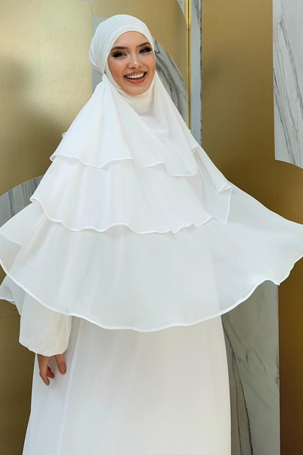 Peçeli 3 Katlı Şifon Sufle Şal 6012 Ekru