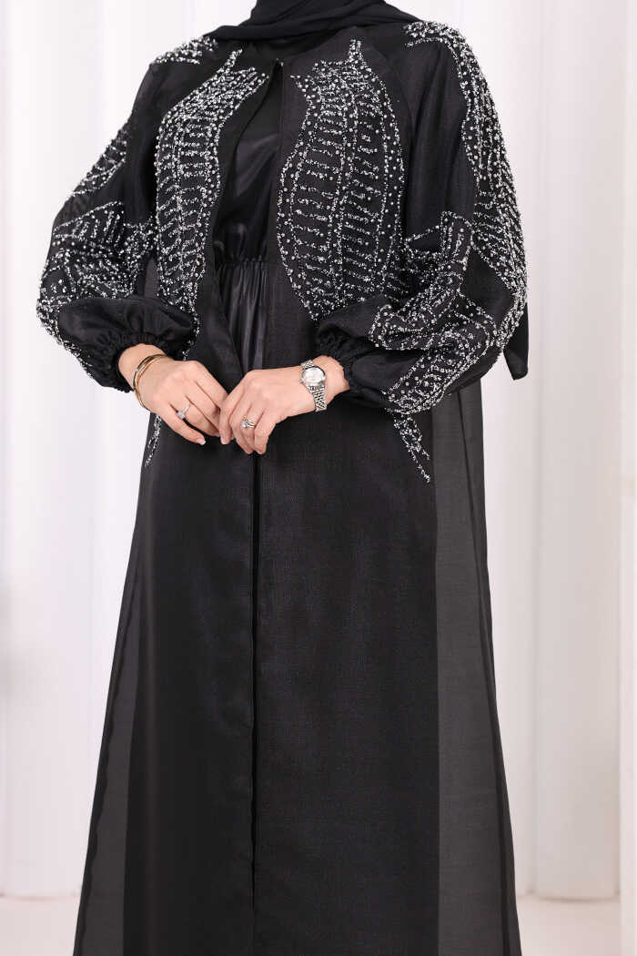 Taş Detaylı Elbise Abaya Takım 3943 Siyah