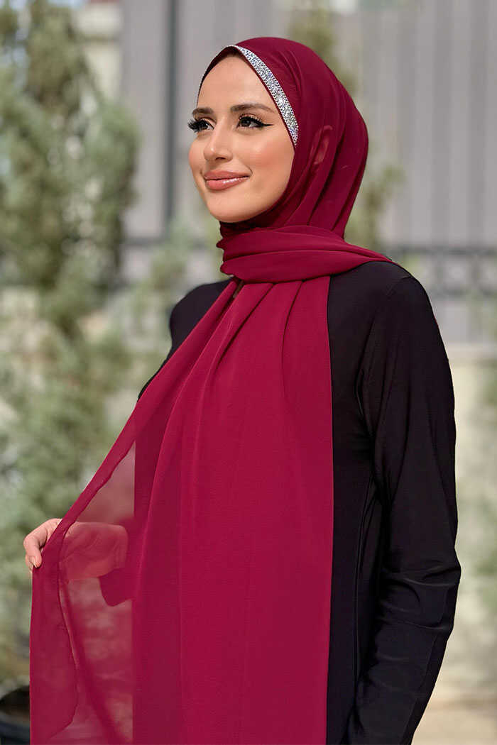 Taş Detaylı Şifon Şal 2026 Bordo