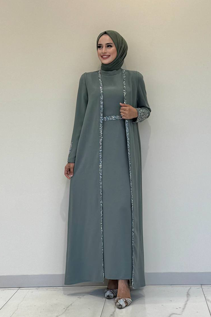 TAŞ İŞLEMELİ YELEKLİ ELBİSE TAKIM: