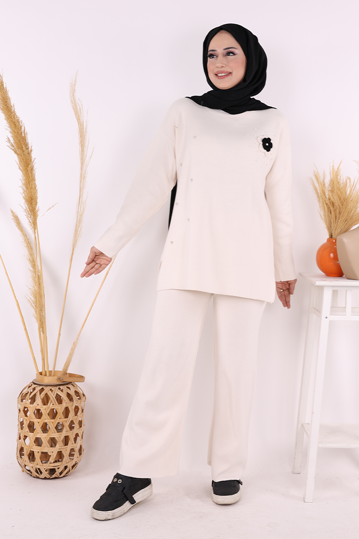 1655 Taş ve Çiçek Detaylı Triko Takım .