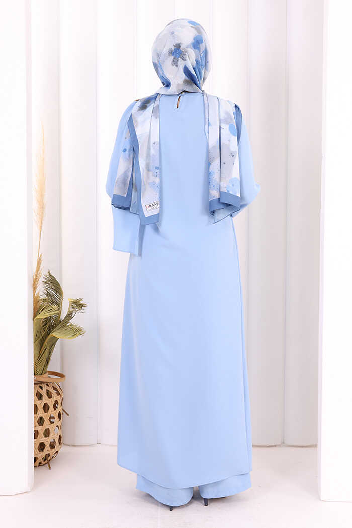 Tek Omuz Gold Toka Detaylı Tunik Pantolon Takım 8698 Bebe Mavisi