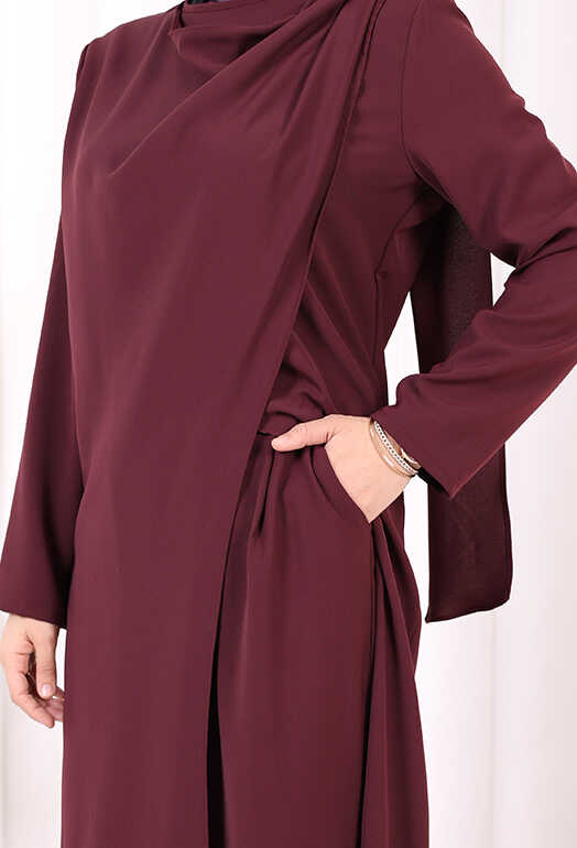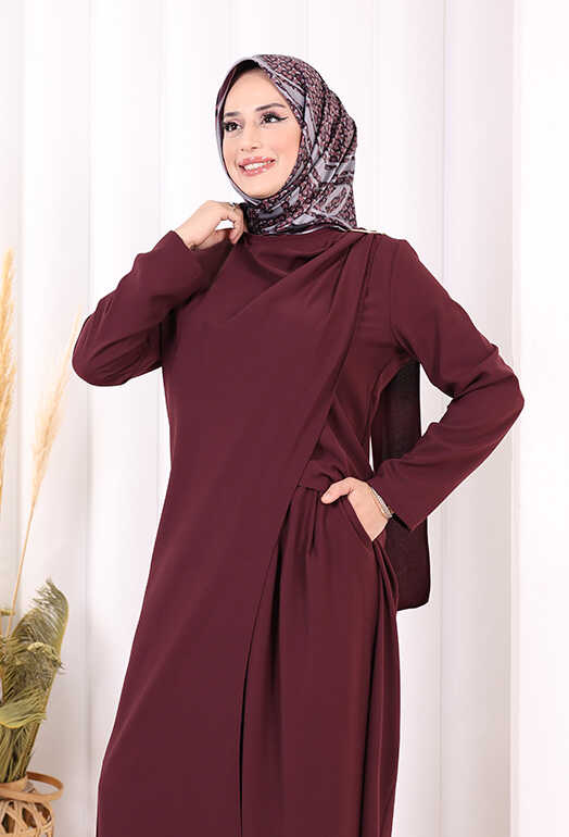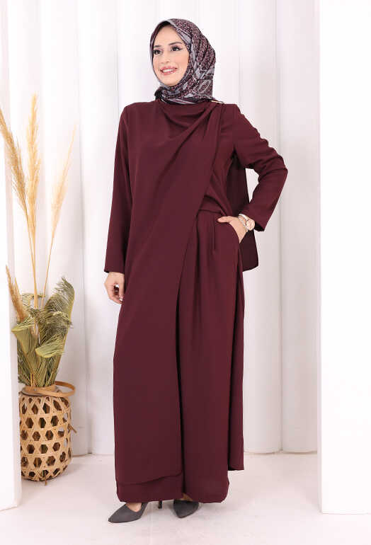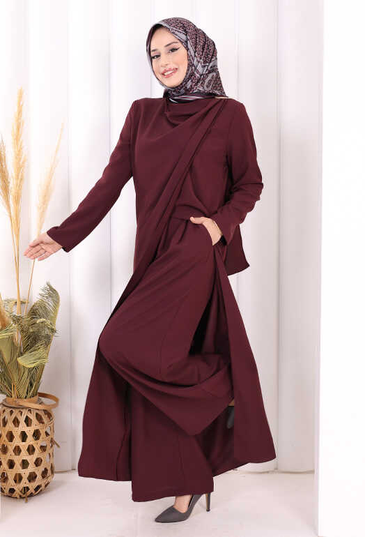 Tek Omuz Gold Toka Detaylı Tunik Pantolon Takım 8698 Mürdüm