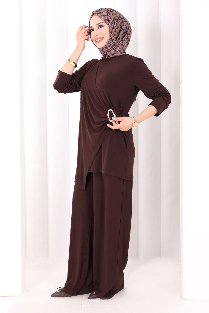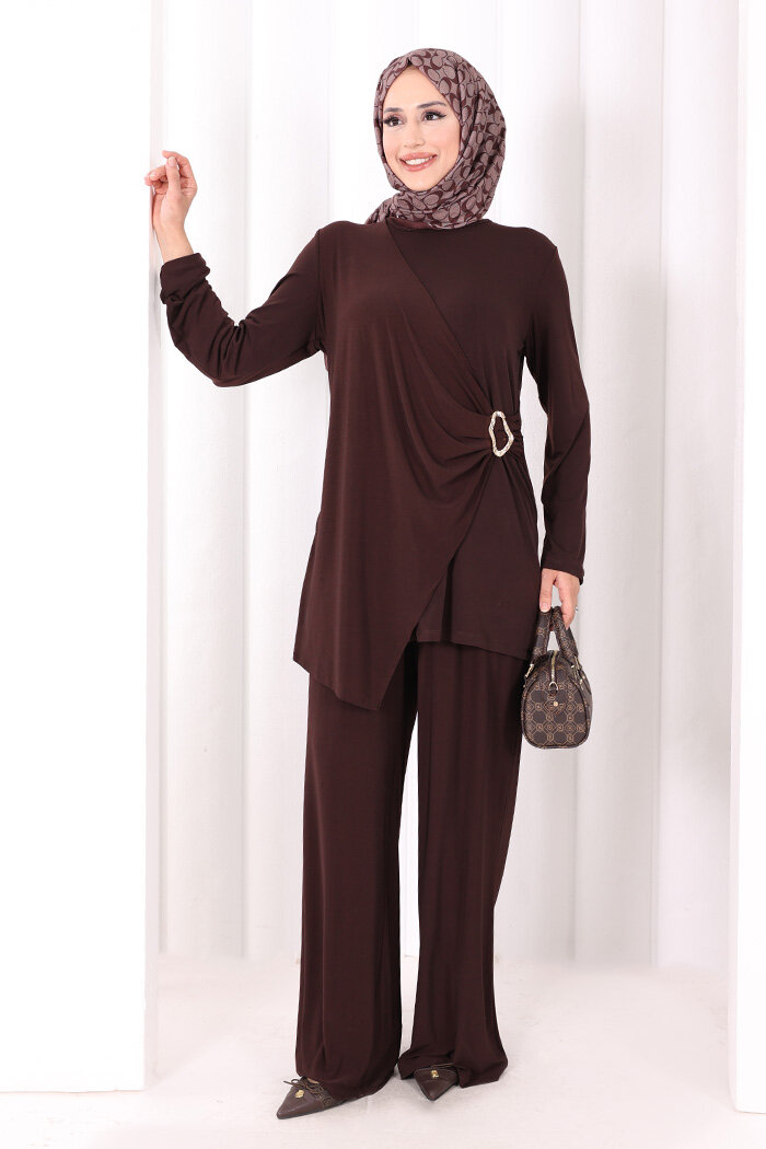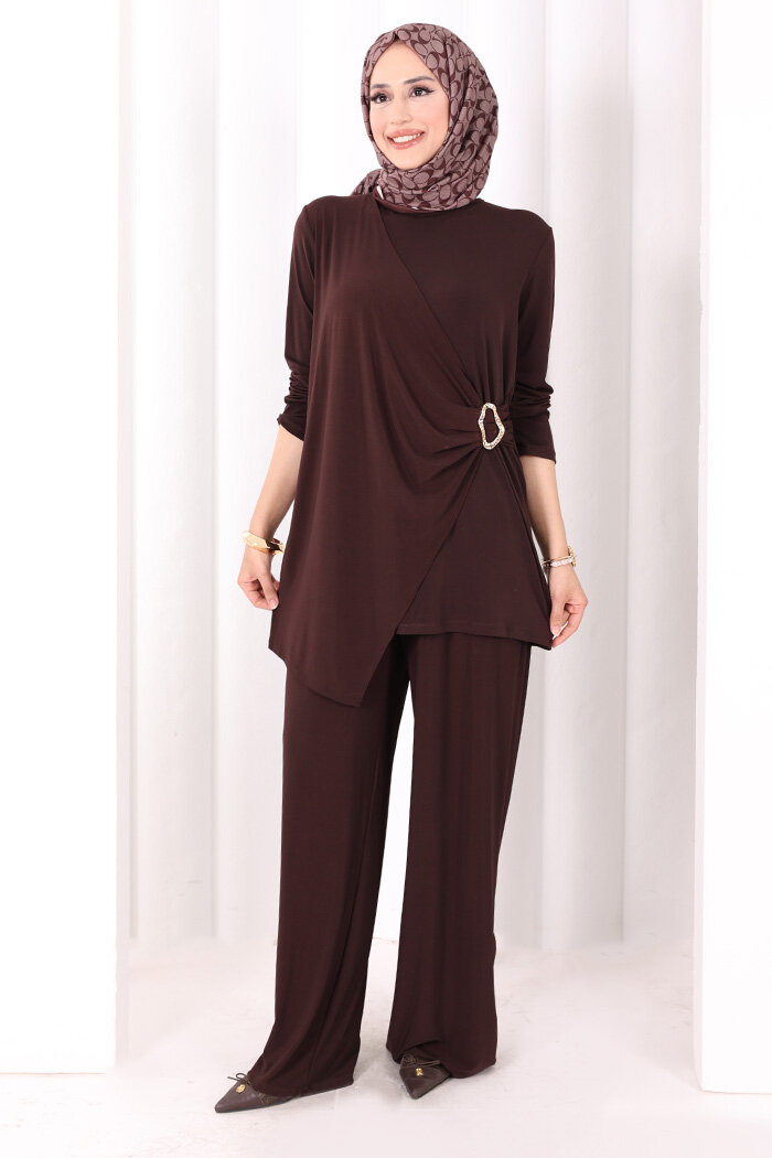 Toka Detaylı İkili Takım 8034 Kahverengi