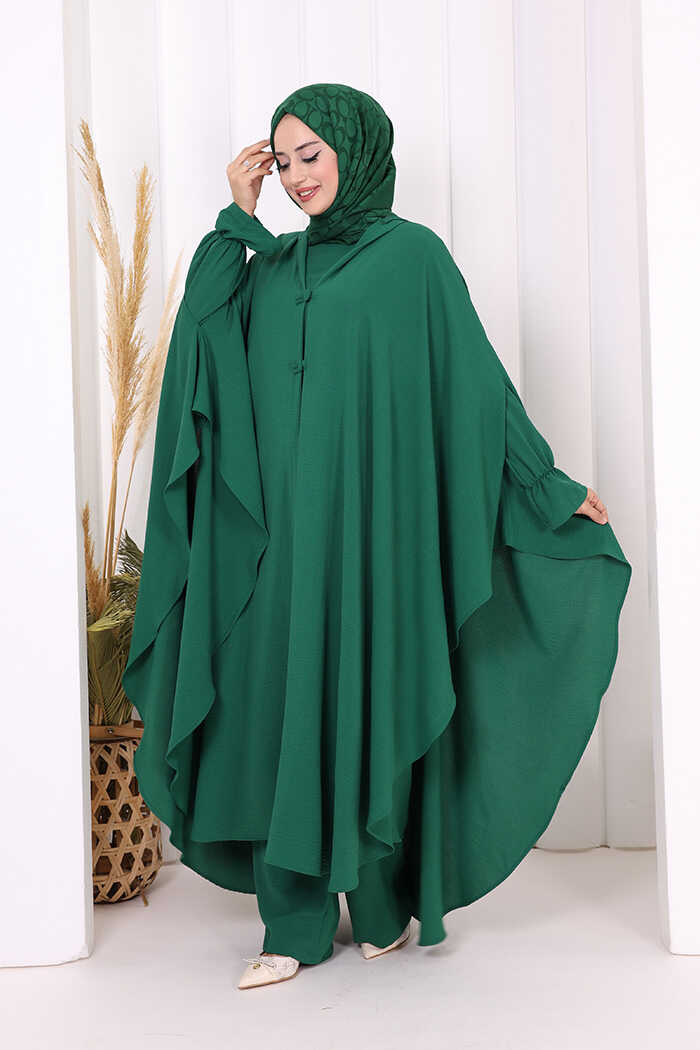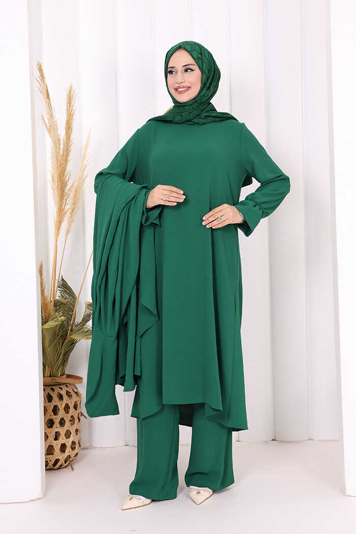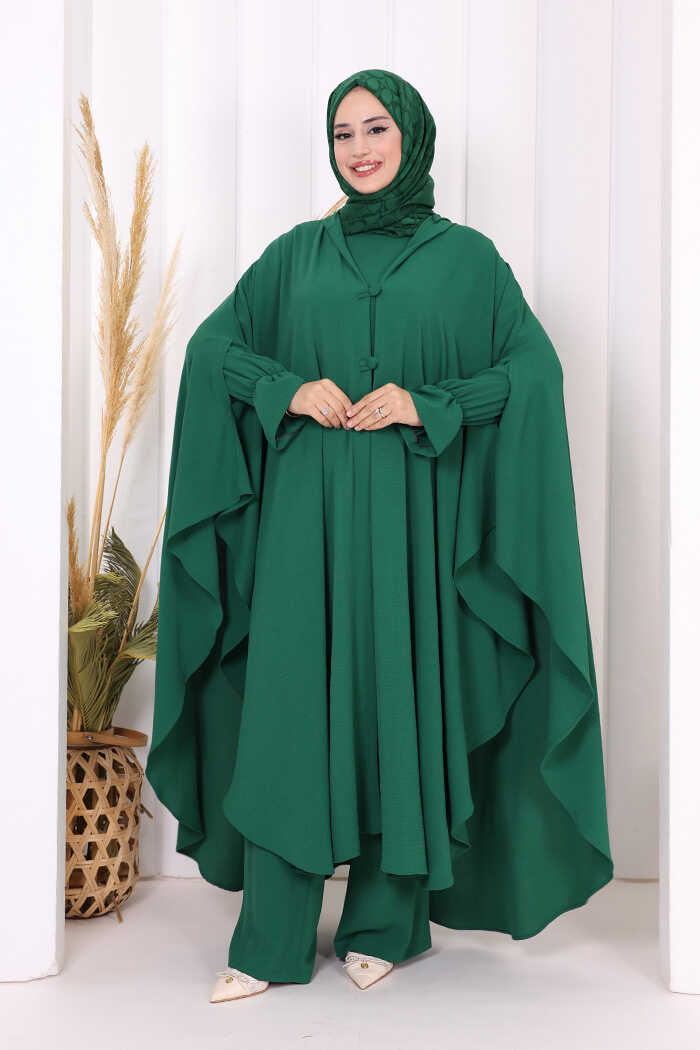 Tunik, Pantolon ve Abaya Üçlü Takım 8663 Zümrüt