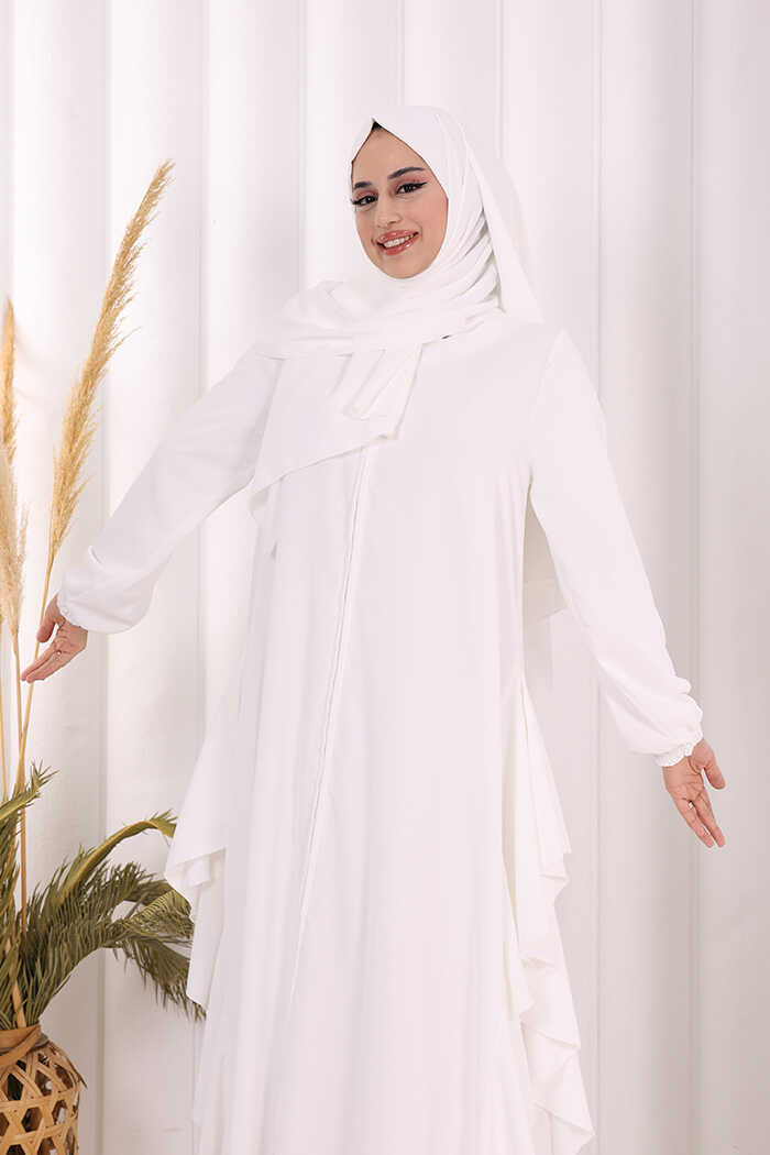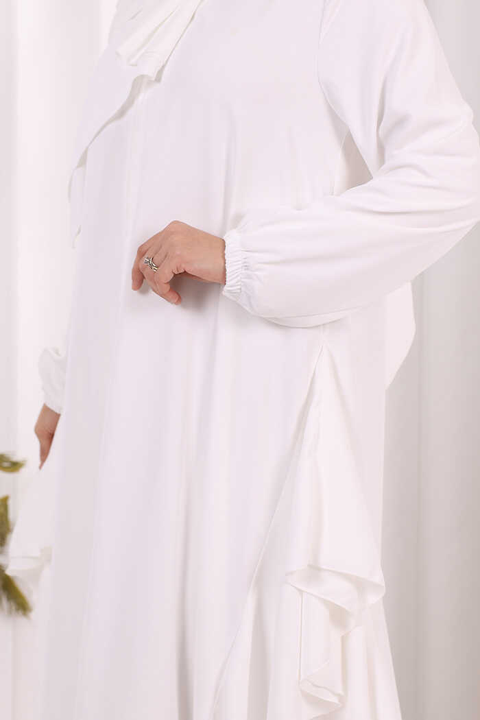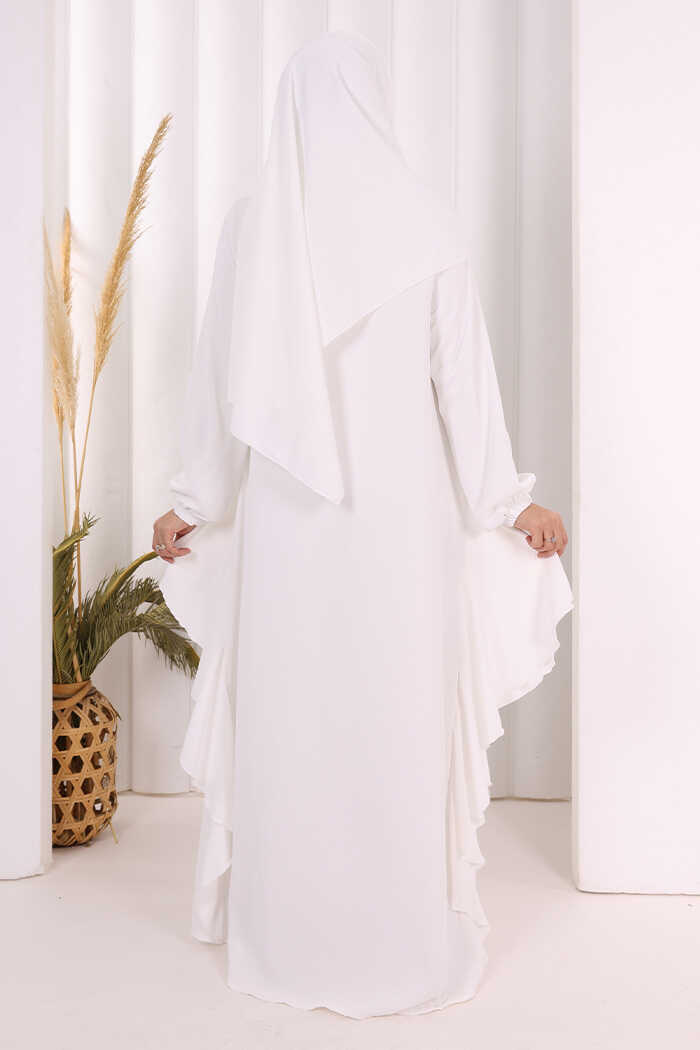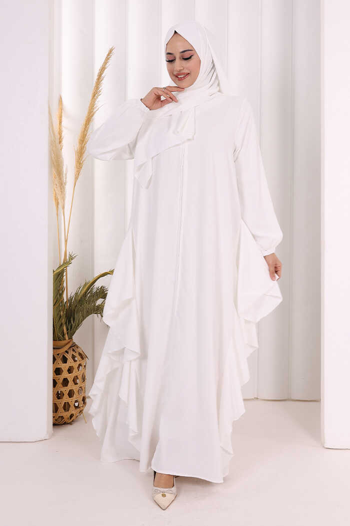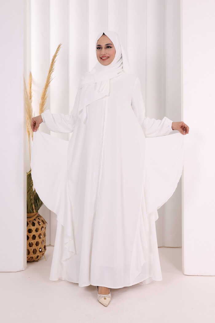 Umre Yan Fırfır Detaylı Ferace ŞAL HEDİYE 7057 Ekru