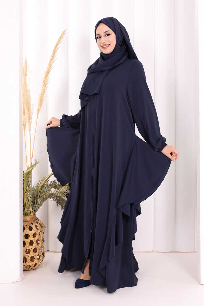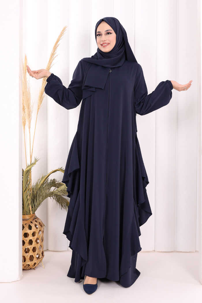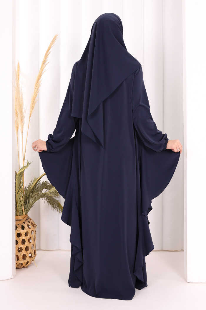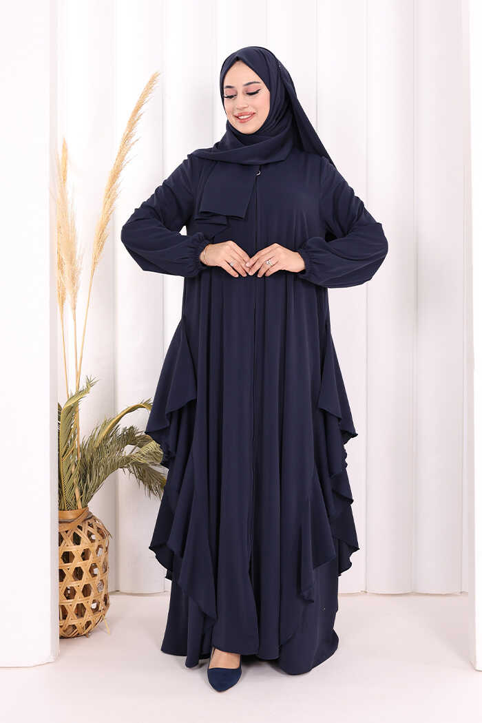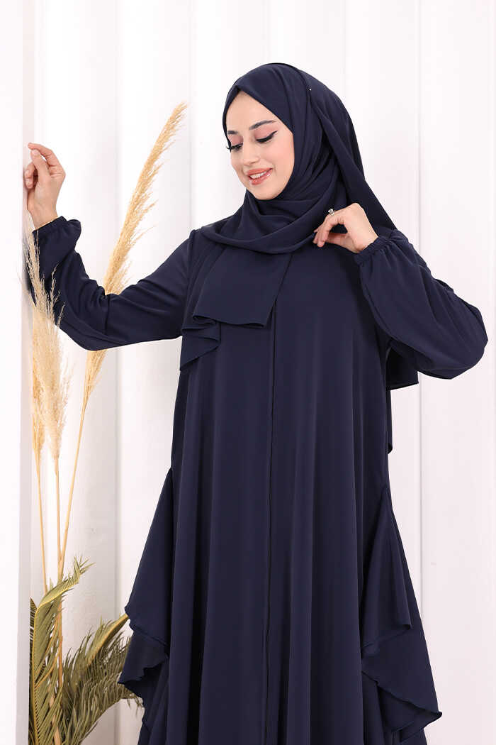 Umre Yan Fırfır Detaylı Ferace ŞAL HEDİYE 7057 Lacivert
