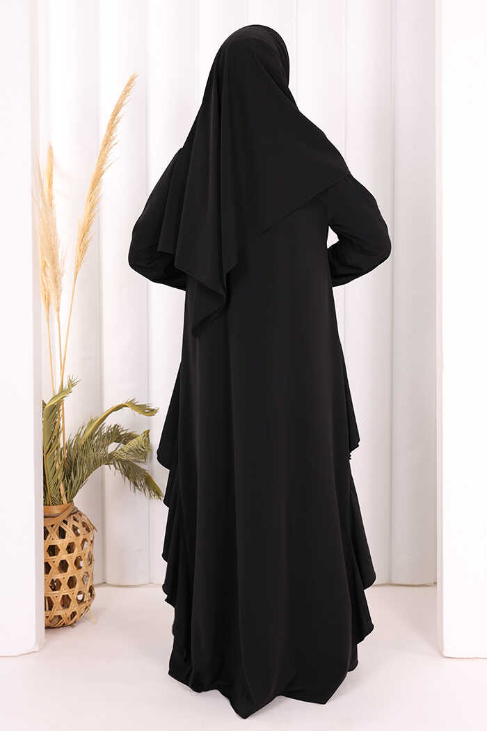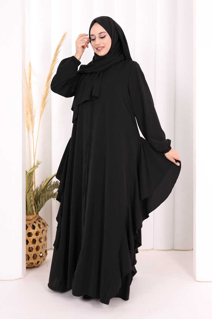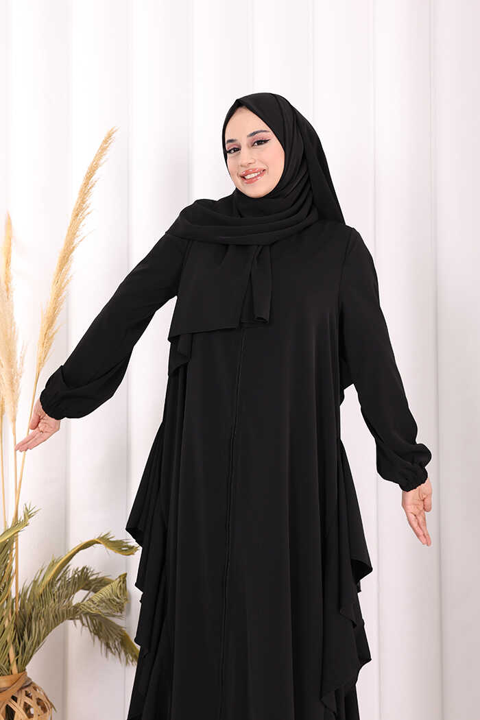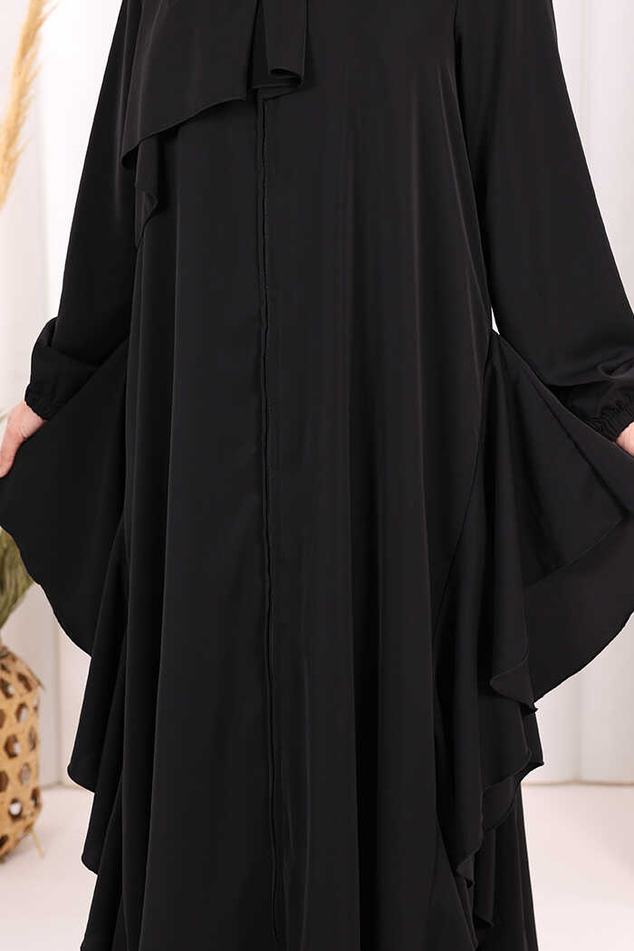Umre Yan Fırfır Detaylı Ferace ŞAL HEDİYE 7057 Siyah