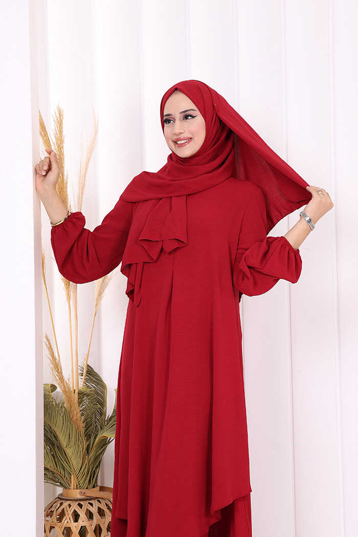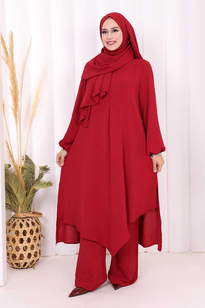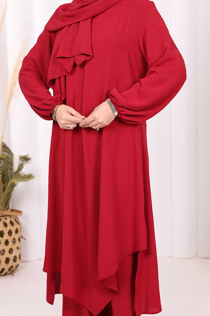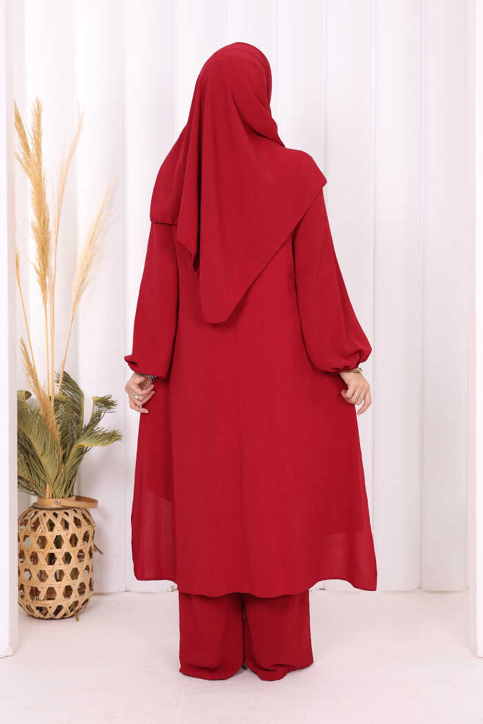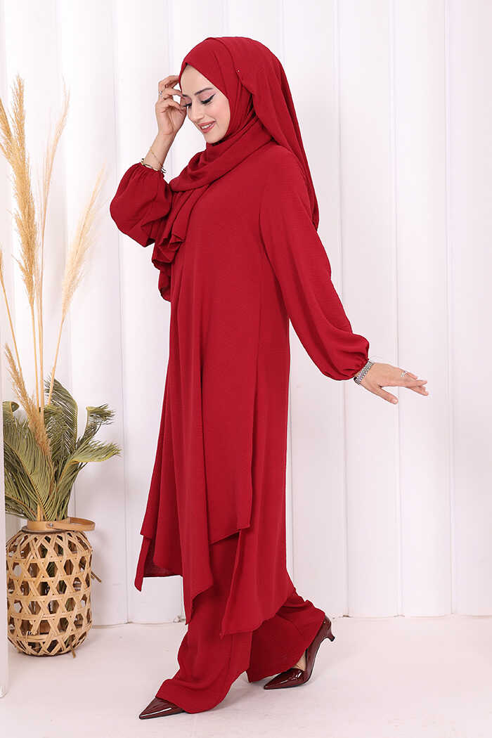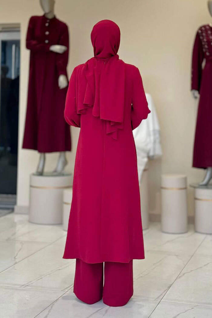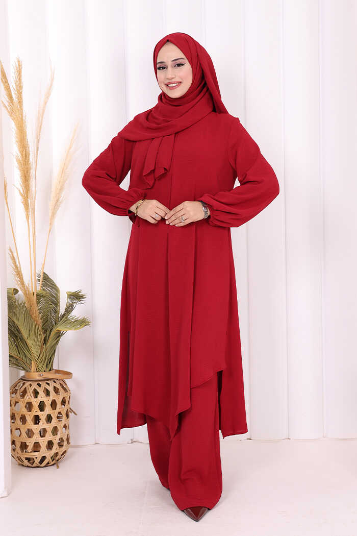 Verevli Tunik, Pantolon Takım Şal HEDİYE 3937 Bordo
