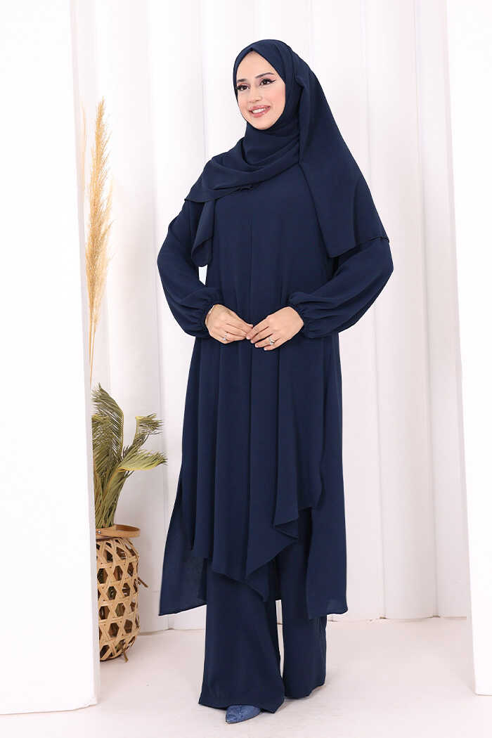 Şal, pantolon ve tunik olmak üzere 3 parçadan oluşmaktadır.