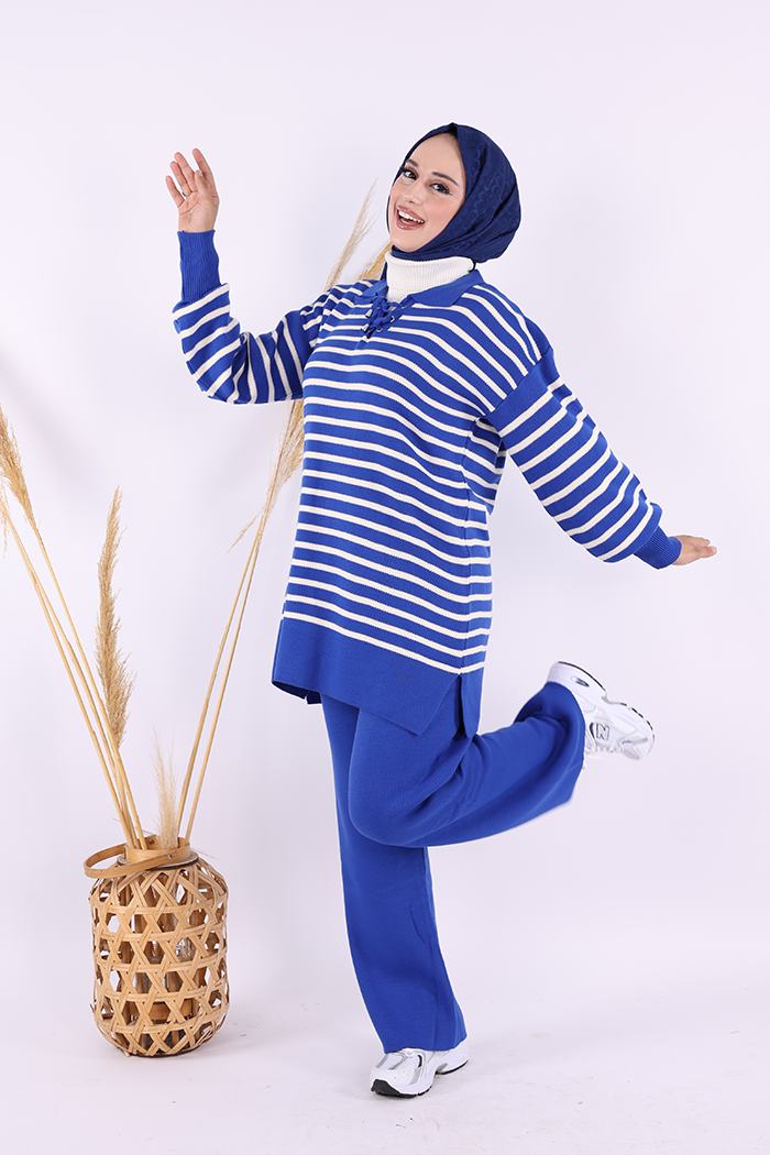 YAKA BAĞLAMA DETAYLI TUNİK VE PANTOLON İKİLİ TRİKO TAKIM: