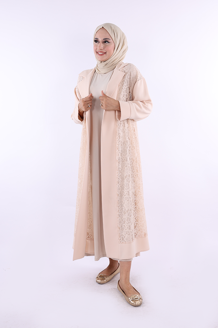 GÜPÜR DANTEL DETAYLI ABAYA KAP