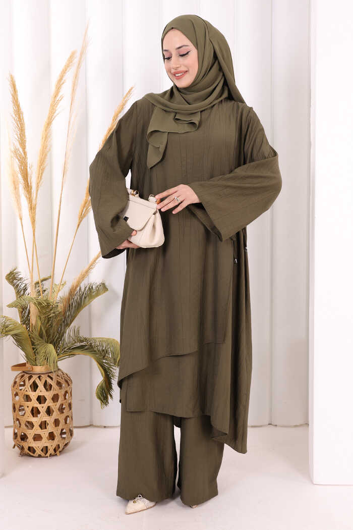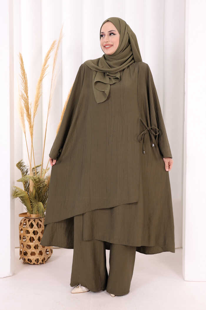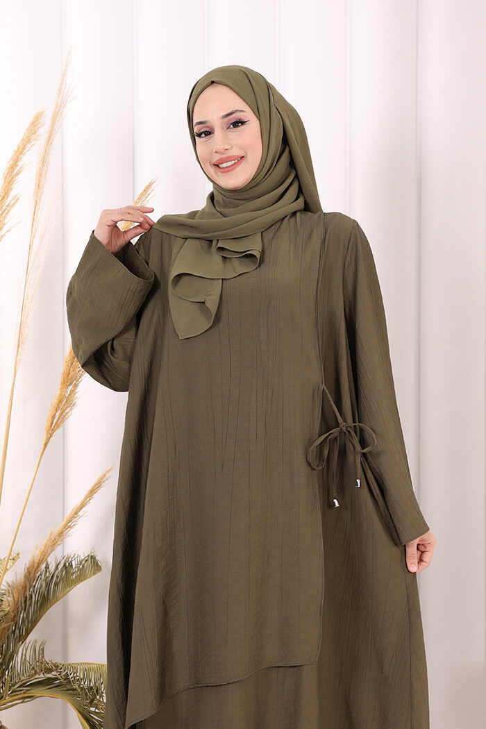 Yandan Bağlamalı Tunik Pantolon Takım 8008 Haki