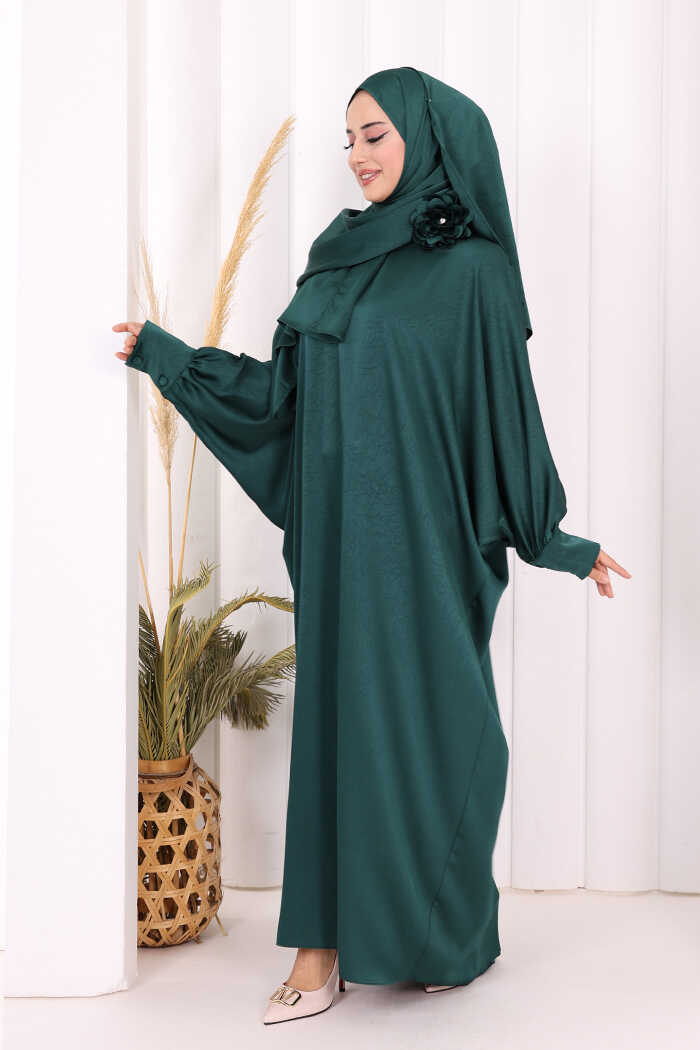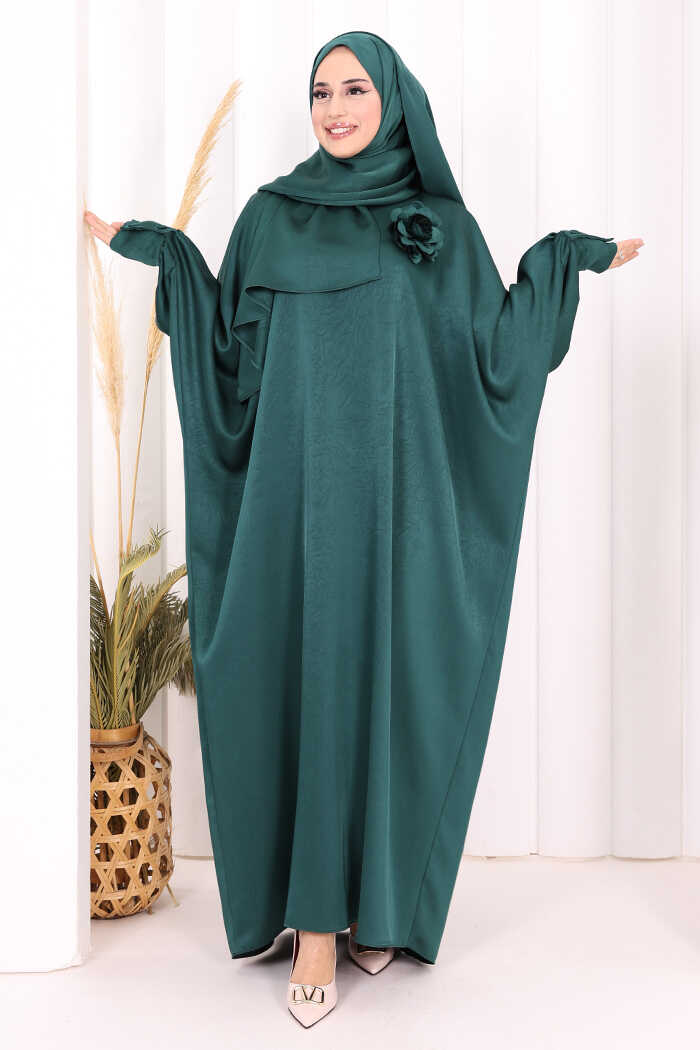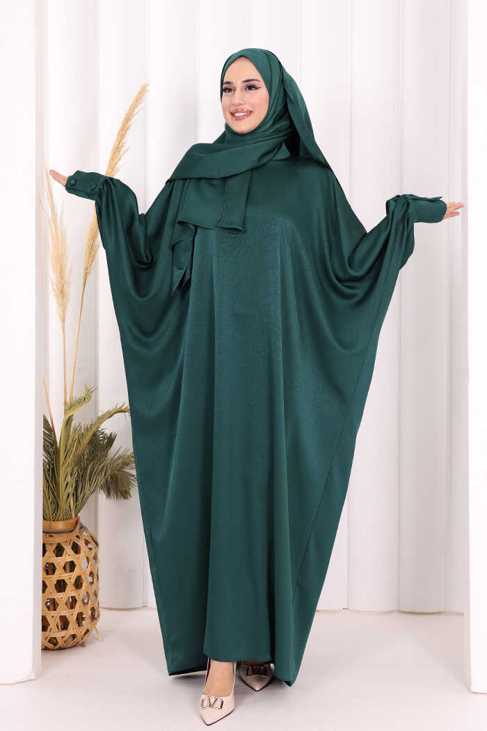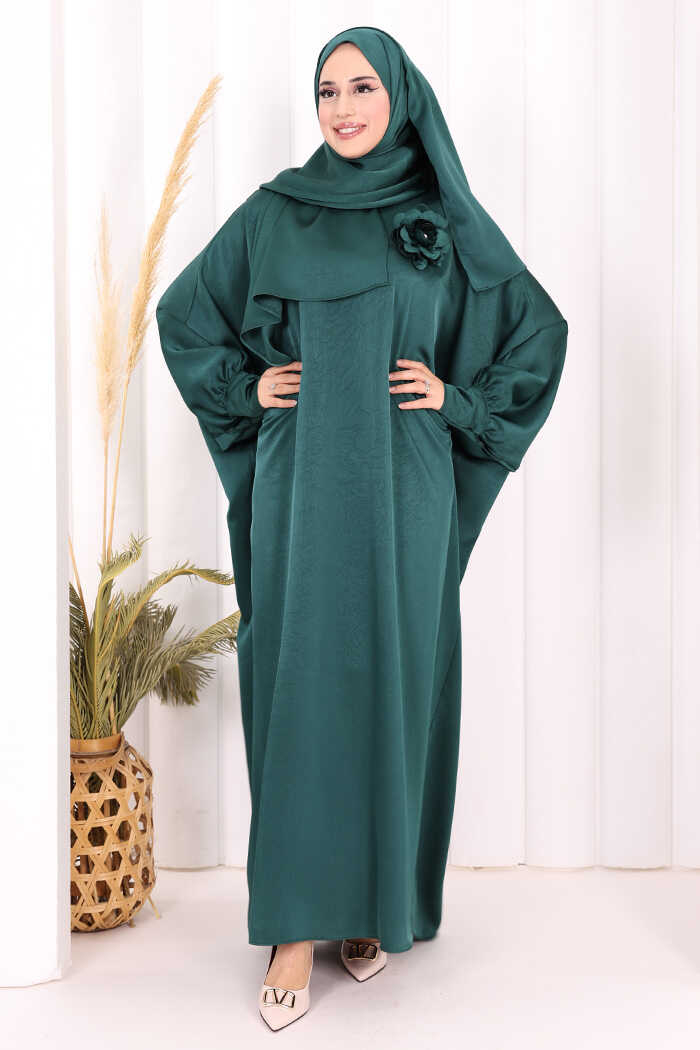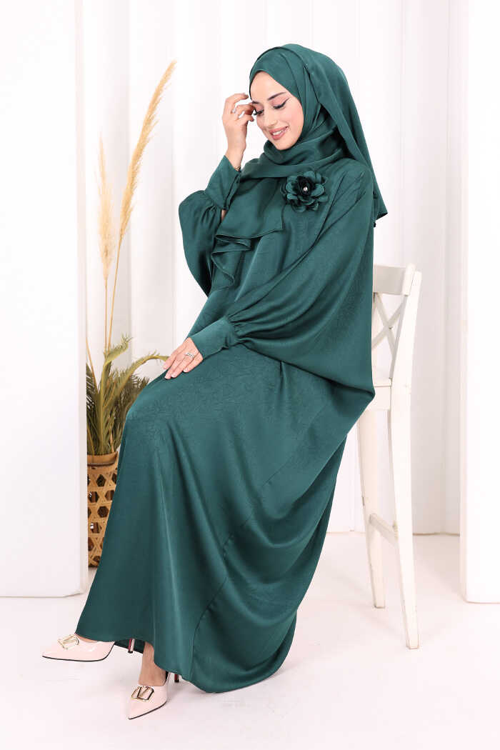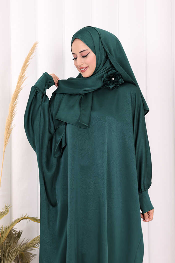Yarasa Kol Saten Elbise 7054 Zümrüt