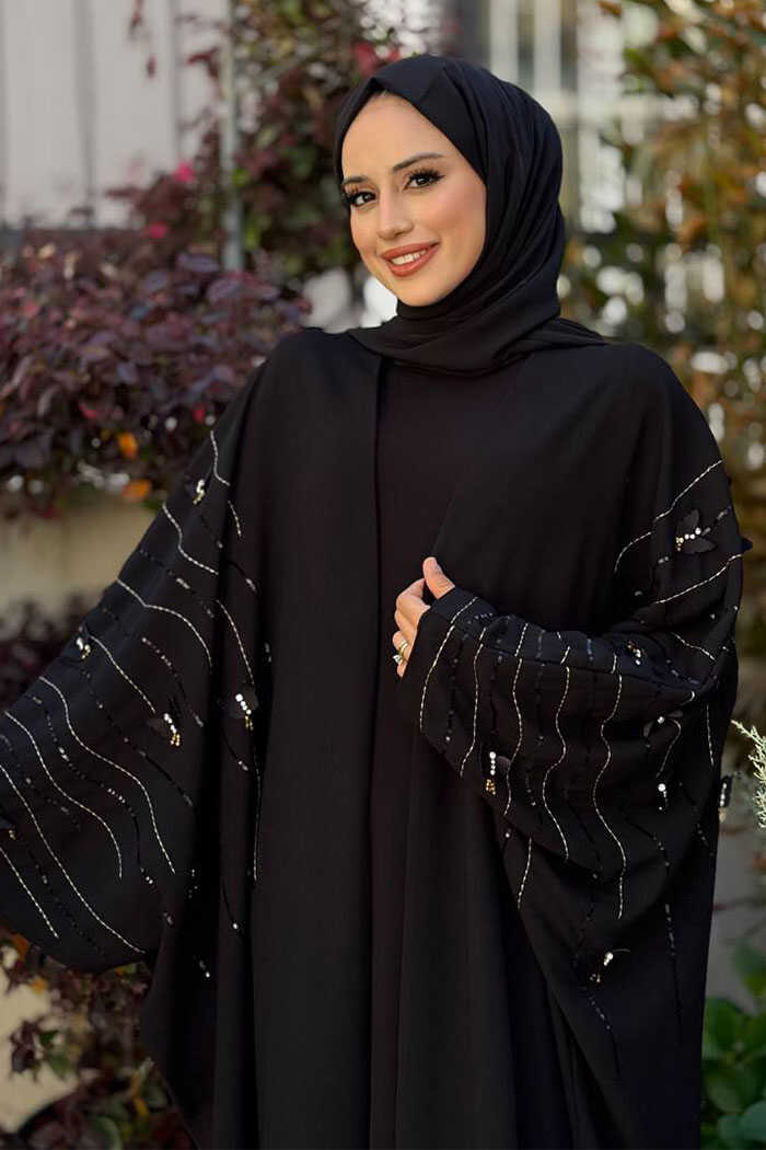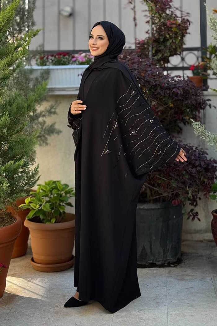 Yarasakol İşleme Detaylı Abaya 70012 Siyah-Gold