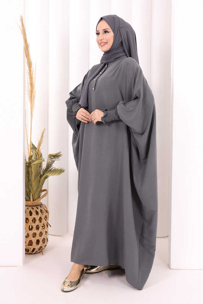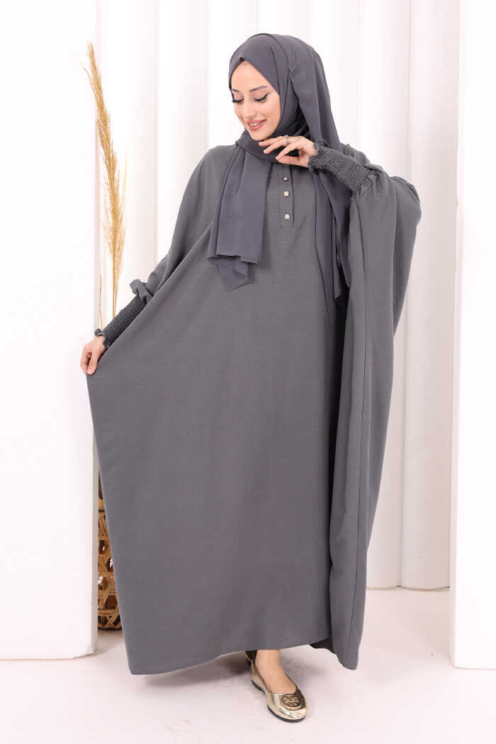 Yarasakollu Elbise 6077 Antrasit